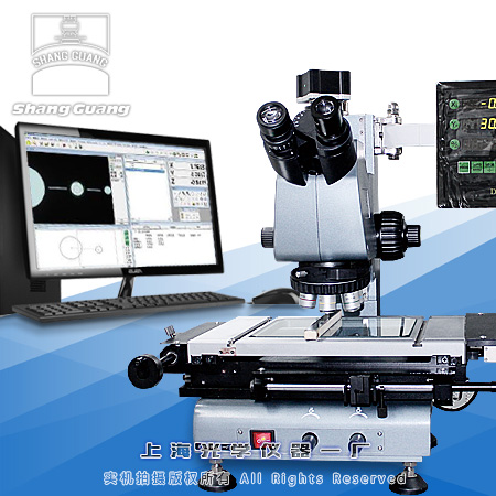 直角座標中測定長度,例如:測定孔距、基面距離、刻線距離、刻線寬度、鍵槽寬度、狹縫寬度、通孔外圓直徑等等。轉動度盤測定角度,例如:對刻度盤、樣板、量規、鉆孔模板及幾何形狀復雜的零件進行角度測量。